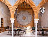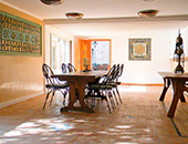 Le cloître est agrémentée d’une fontaine à vasque et d’une immense table en fer forgé. En hiver, sa grande cheminée réchauffera les convives et les lieux.